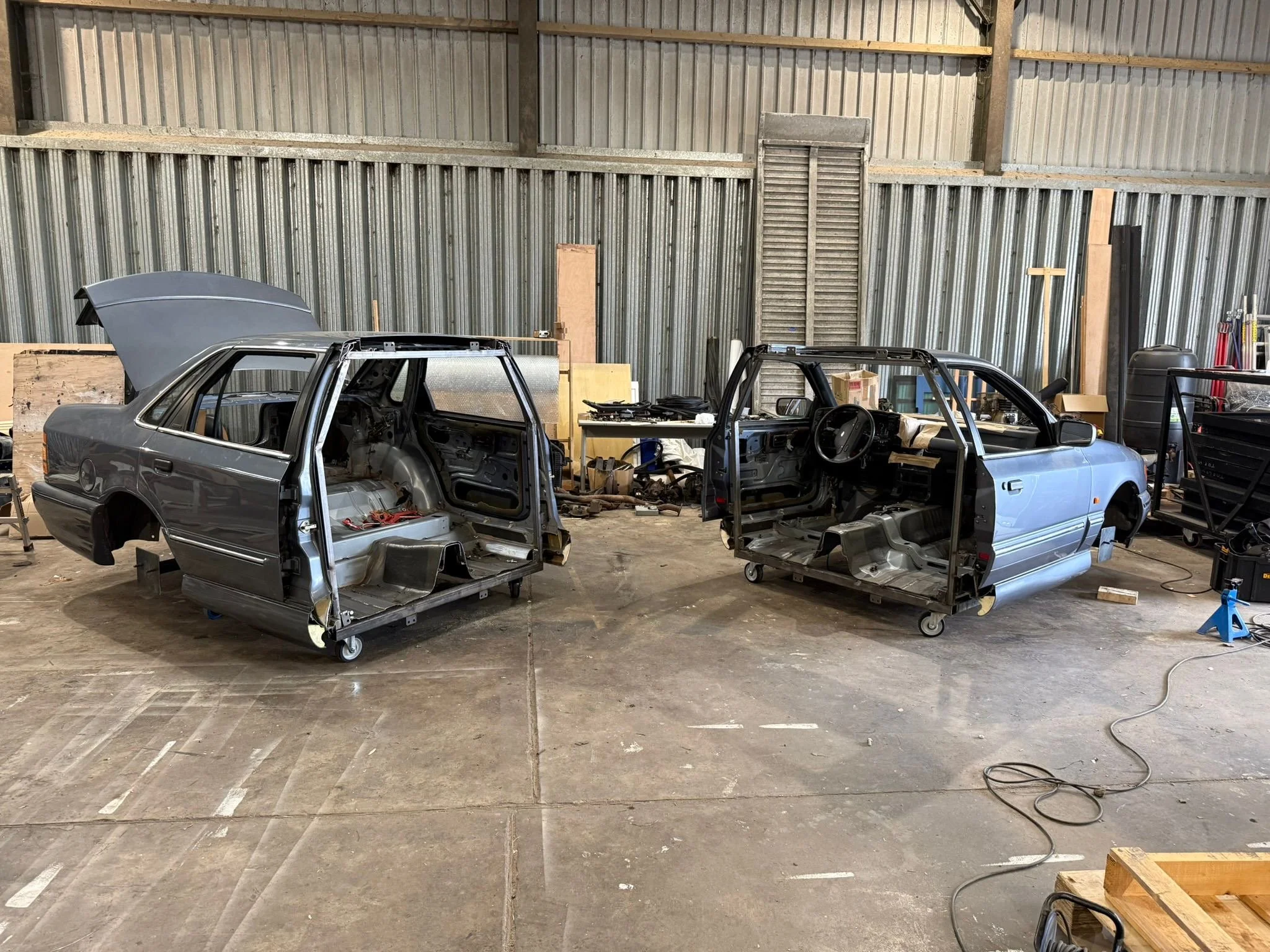 The transformation of a car stripped and cut into two, ready to go up to rehearsal rooms in a lift.